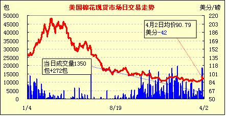 美國棉花現(xiàn)貨市場(chǎng)行情(12-4-2)