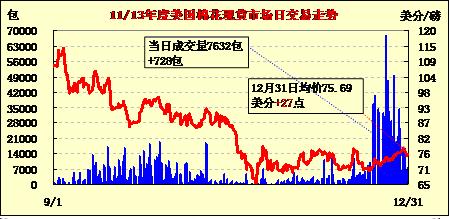 美國棉花現(xiàn)貨市場行情(12-12-31)