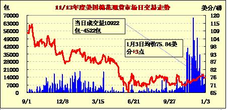 美國棉花現(xiàn)貨市場行情(13-1-3)
