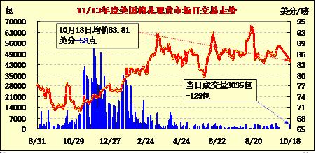 基于美國(guó)紐約期貨市場(chǎng) 標(biāo)準(zhǔn)級(jí) 中等級(jí) 漲跌 當(dāng)日成交 增減量 季度成交