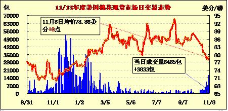 美國棉花現(xiàn)貨市場行情(11-08)
