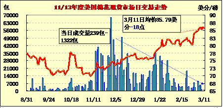 美國棉花現(xiàn)貨市場行情(13-3-11)
