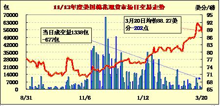美國(guó)棉花現(xiàn)貨市場(chǎng)行情(13-3-20)