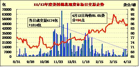 美國棉花現(xiàn)貨市場行情(13-4-12)