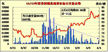 美國棉花現(xiàn)貨市場行情(13-4-4)
