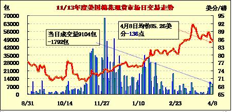 美國棉花現(xiàn)貨市場(chǎng)行情(13-4-8)