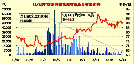 美國棉花現(xiàn)貨市場行情(13-5-14)