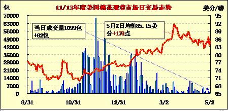 美國(guó)棉花現(xiàn)貨市場(chǎng)行情(13-5-2)