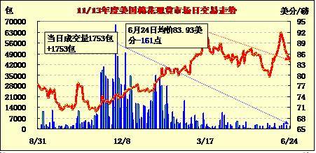 美國棉花現(xiàn)貨市場行情(13-6-24)