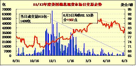 美國棉花現(xiàn)貨市場行情(13-6-3)