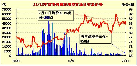 美國棉花現(xiàn)貨市場行情(13-7-11)