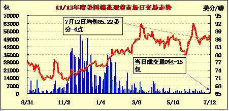 美國棉花現貨市場行情(13-7-12)