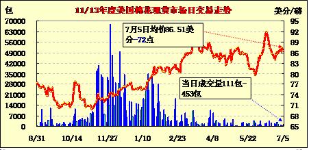 美國(guó)棉花現(xiàn)貨市場(chǎng)行情(13-7-5)