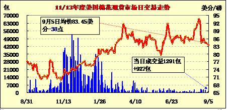 美國棉花現(xiàn)貨市場(chǎng)行情(13-9-5)