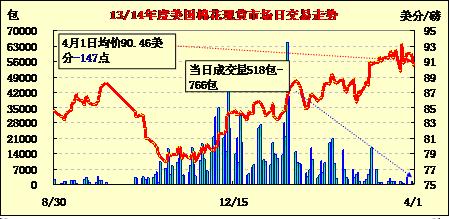美國棉花現(xiàn)貨市場(chǎng)行情(04-01)