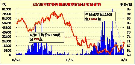 美國棉花現(xiàn)貨市場(chǎng)行情(04-08)