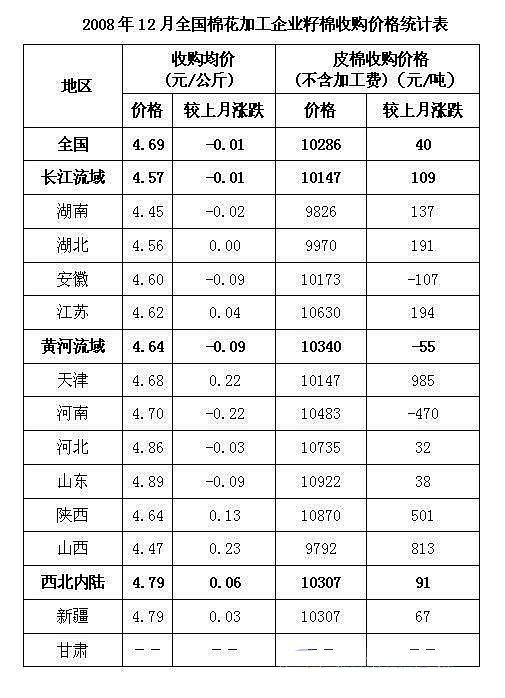 12月,棉花收購和銷售價(jià)格均有所上漲,收購成本有所加大,但銷售情況仍然不理想,棉籽價(jià)格下跌,加工企業(yè)利潤略減。