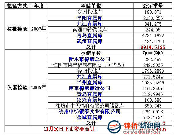 錦橋紡織網(wǎng)—資訊頻道> 棉花信息> 棉花動態(tài)>正文 11月20日拋儲預(yù)告:計劃拋儲16123噸
