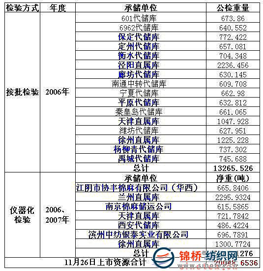 錦橋紡織網(wǎng)—資訊頻道> 棉花信息> 棉花動態(tài)>正文 11月26日拋儲預告:計劃拋儲儲備棉20049噸