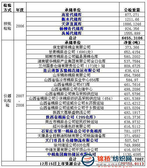 錦橋紡織網(wǎng)—資訊頻道> 棉花信息> 棉花動態(tài)>正文 12月15日拋儲預告:計劃拋儲儲備棉20076噸