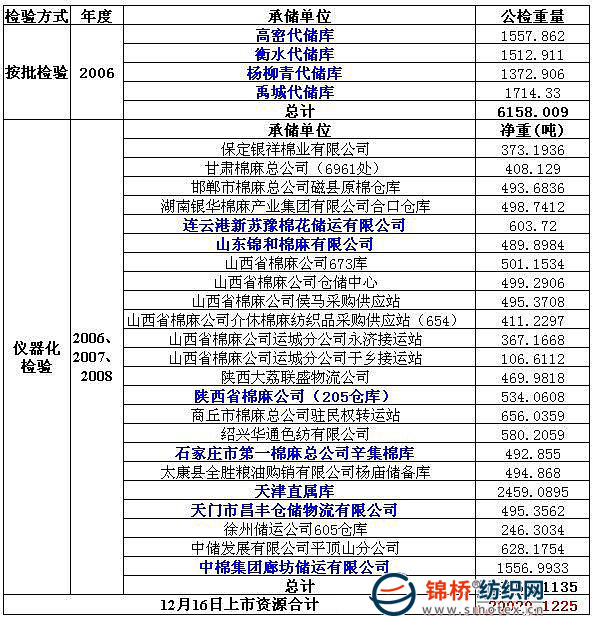 錦橋紡織網(wǎng)—資訊頻道> 棉花信息> 棉花動(dòng)態(tài)>正文 12月16日拋儲(chǔ)預(yù)告:計(jì)劃拋儲(chǔ)儲(chǔ)備棉20020噸