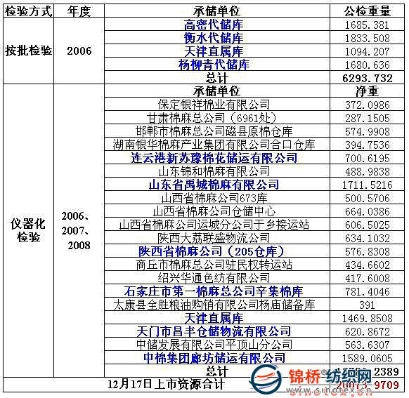 錦橋紡織網(wǎng)—資訊頻道> 棉花信息> 棉花動態(tài)>正文 12月17日拋儲預告:計劃拋儲儲備棉20074噸