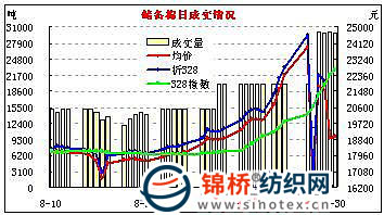 三是由于現(xiàn)貨棉價(jià)持續(xù)加速提價(jià),而儲(chǔ)備棉競(jìng)價(jià)逐步趨于理性,儲(chǔ)備棉價(jià)已明顯低于現(xiàn)貨棉價(jià)。9月30日,328級(jí)棉價(jià)指數(shù)再漲299元達(dá)22684元/噸,高于儲(chǔ)備棉均價(jià)由29日的3518元擴(kuò)大到3646元。