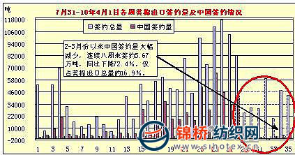 其中中國凈簽約進(jìn)口本年度陸地棉4831噸,裝運25923噸;另裝運本年度皮馬棉1610噸。2-3月份以來中國簽約量大幅減少,連續(xù)八周來簽約5.67萬噸,同比下降72.4%,僅占美棉出口總量的16.9%。