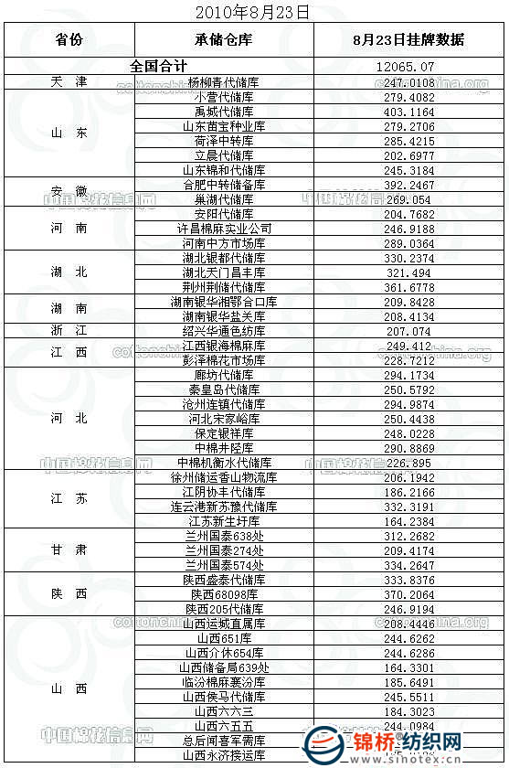錦橋紡織網(wǎng)—資訊頻道> 棉花信息> 棉花動(dòng)態(tài)>正文 8月23日儲(chǔ)備棉投放預(yù)告:計(jì)劃投放12065噸