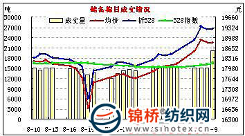 9月9日儲備棉投放數(shù)量為20058噸,較昨日增加近五千噸,全部成交;平均等級3.91,較上一日低0.04;平均長度28.22,與上一日相比低0.1;加權(quán)成交價18809元/噸,較上一日跌18元,折328級成交價為19281元/噸,較上一日高21元。 當(dāng)日成交主要特點: