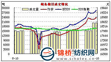 二、成交價(jià)回升。當(dāng)日成交均價(jià)18930元/噸,較前一交易日漲121元。其中3級(jí)棉19130元/噸,漲210元/噸;4級(jí)棉19014元/噸,漲176元;5級(jí)棉18361元/噸,漲24元。