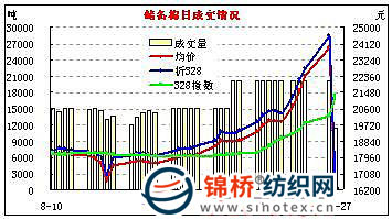 9月26日儲備棉投放數(shù)量為20037噸,8600噸資源流拍,實際成交11437噸,平均等級3.95,較上25日高0.08;平均長度28.39,與25日相比高0.09;加權(quán)成交價16419元/噸,較25日跌7471元,折328級成交價為16825元/噸,較25日跌7731元。