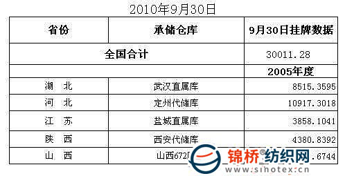 錦橋紡織網(wǎng)—資訊頻道> 棉花信息> 棉花動(dòng)態(tài)>正文 9月30日儲(chǔ)備棉投放預(yù)告:計(jì)劃投放30011.28噸