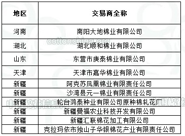 2011年度臨時收儲第二十五批已審核交易商來自全國5個主產(chǎn)區(qū),共計10家。