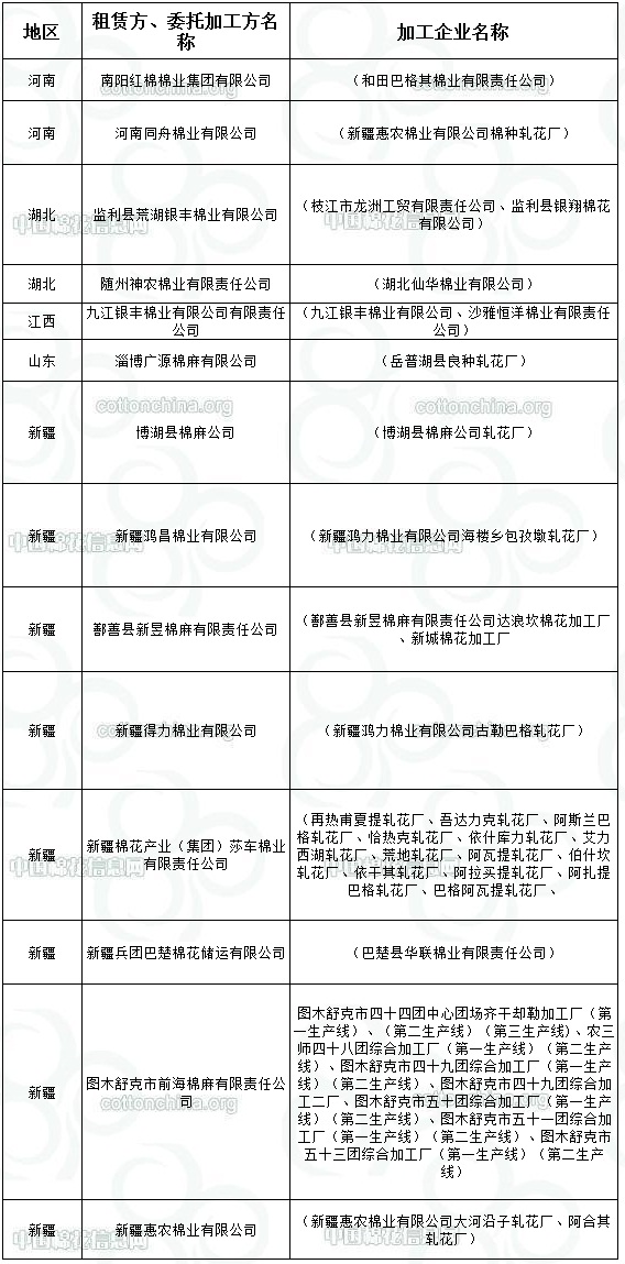 2011年度臨時收儲第十一批已審核租賃、委托加工交易商來自全國5個主產區(qū)。 詳細名單如下: