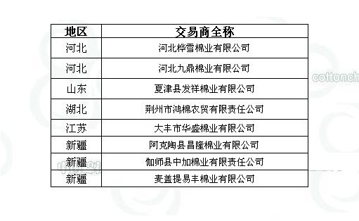 2011年度臨時收儲第二十八批已審核交易商來自全國5個主產(chǎn)區(qū),共計8家。