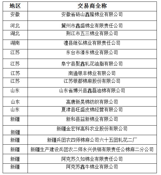 2011年度臨時收儲第二十二批已審核交易商來自全國7個主產(chǎn)區(qū),共計17家。