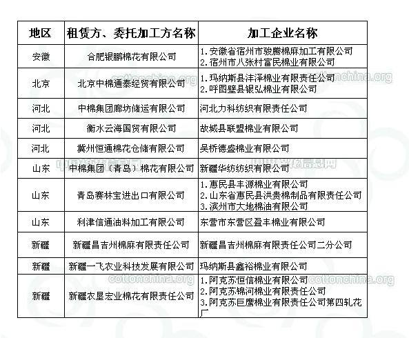 錦橋紡織網(wǎng)—資訊頻道> 棉花信息> 棉花動(dòng)態(tài)>正文 2011年度臨時(shí)收儲(chǔ)已審核租賃、委托加工交易商名單(第二十九批)