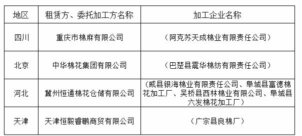 2011年度臨時收儲第三十批已審核租賃、委托加工交易商來自全國4個地區(qū)。詳細(xì)名單如下: