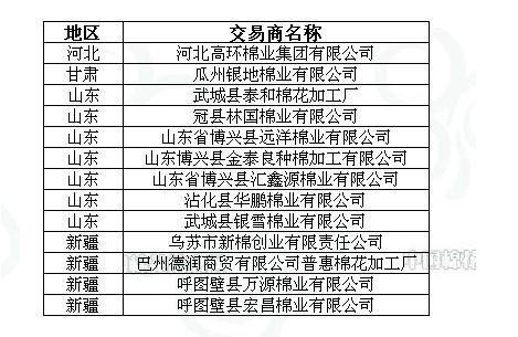 2011年度臨時(shí)收儲(chǔ)第五十批已審核交易商來(lái)自全國(guó)4個(gè)主產(chǎn)區(qū),共計(jì)13家。詳細(xì)名單如下:
