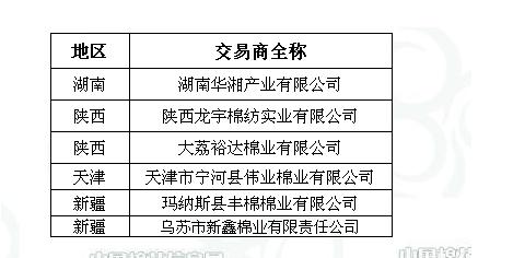 2011年度臨時收儲第四十批已審核交易商來自全國4個主產(chǎn)區(qū),共計6家。詳細名單如下: