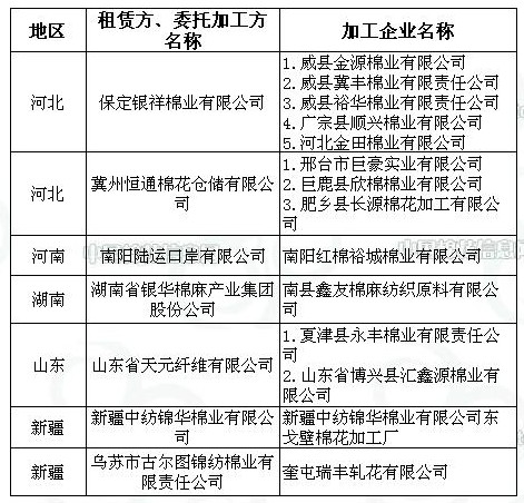 2011年度臨時收儲第四十二批已審核租賃、委托加工交易商來自全國5個主產(chǎn)區(qū)。
