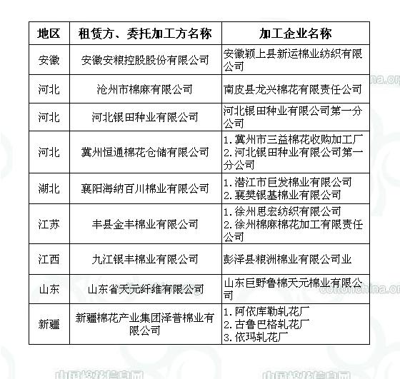 2011年度臨時(shí)收儲(chǔ)第四十三批已審核租賃、委托加工交易商來(lái)自全國(guó)7個(gè)主產(chǎn)區(qū)。詳細(xì)名單如下: