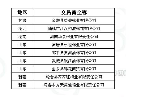 2011年度臨時(shí)收儲(chǔ)第四十一批已審核交易商來(lái)自全國(guó)5個(gè)主產(chǎn)區(qū),共計(jì)9家。詳細(xì)名單如下: