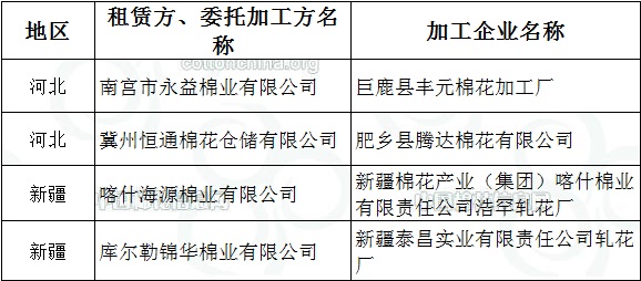 2011年度臨時(shí)收儲(chǔ)第五十批已審核租賃、委托加工交易商來自全國(guó)2個(gè)主產(chǎn)區(qū)。詳細(xì)名單如下: