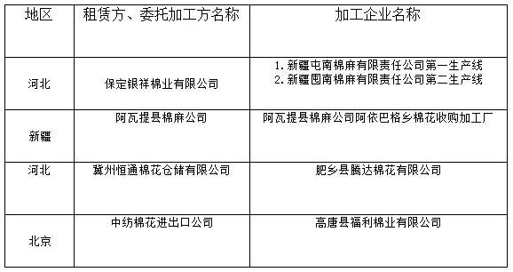 錦橋紡織網(wǎng)—資訊頻道> 棉花信息> 棉花動(dòng)態(tài)>正文 2011年度臨時(shí)收儲(chǔ)已審核租賃、委托加工交易商名單(第五十二批)
