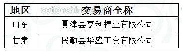 2011年度臨時(shí)收儲(chǔ)第六十九批已審核交易商來(lái)自全國(guó)2個(gè)主產(chǎn)區(qū),共計(jì)2家。詳細(xì)名單如下: