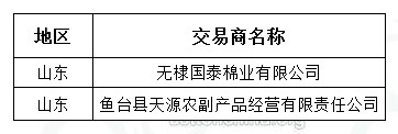 2011年度臨時(shí)收儲(chǔ)第七十三批已審核交易商來(lái)自全國(guó)1個(gè)主產(chǎn)區(qū),共計(jì)2家。詳細(xì)名單如下: