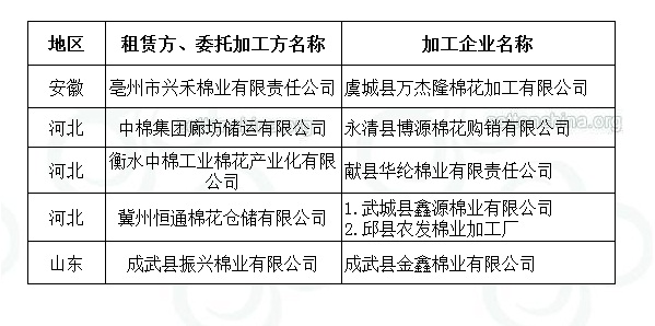 2011年度臨時收儲第六十四批已審核租賃、委托加工交易商來自全國3個主產區(qū)。詳細名單如下: