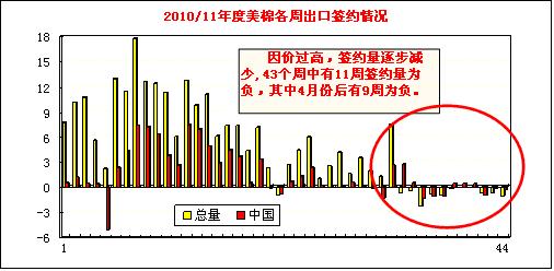 當(dāng)周中國凈簽約本年度陸地棉為負的3583噸(當(dāng)周沒有新簽約),裝運13903噸;凈簽約本年度皮馬棉1338噸,裝運249噸。